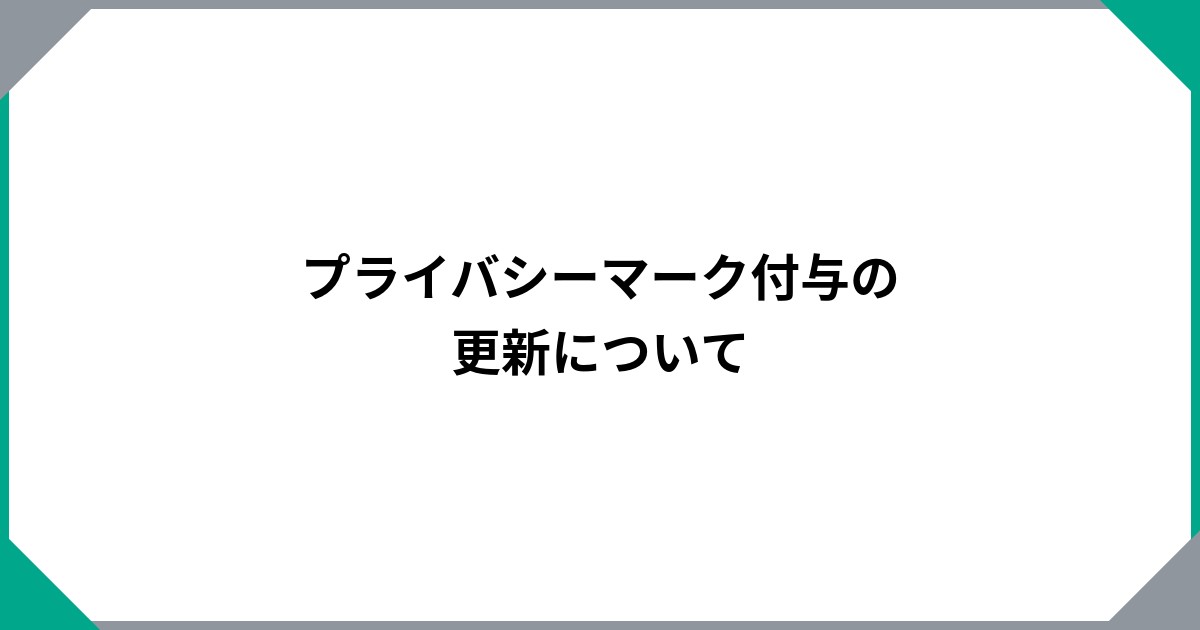 更新審査中となっておりましたプライバシーマークにつきまして、一般財団法人 日本情報経済社会推進協会(JIPDEC)より、プライバシーマークの付与が更新されましたのでお知らせいたします。