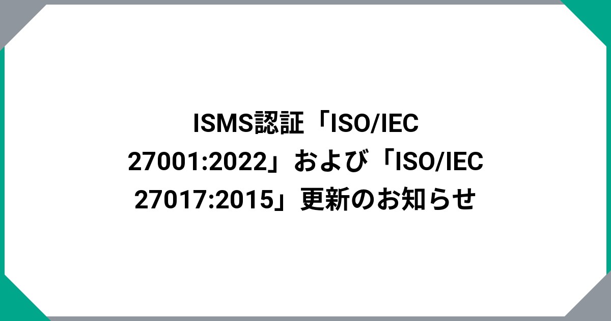 ISMS認証「ISO/IEC 27001:2022」および「ISO/IEC 27017:2015」更新のお知らせ